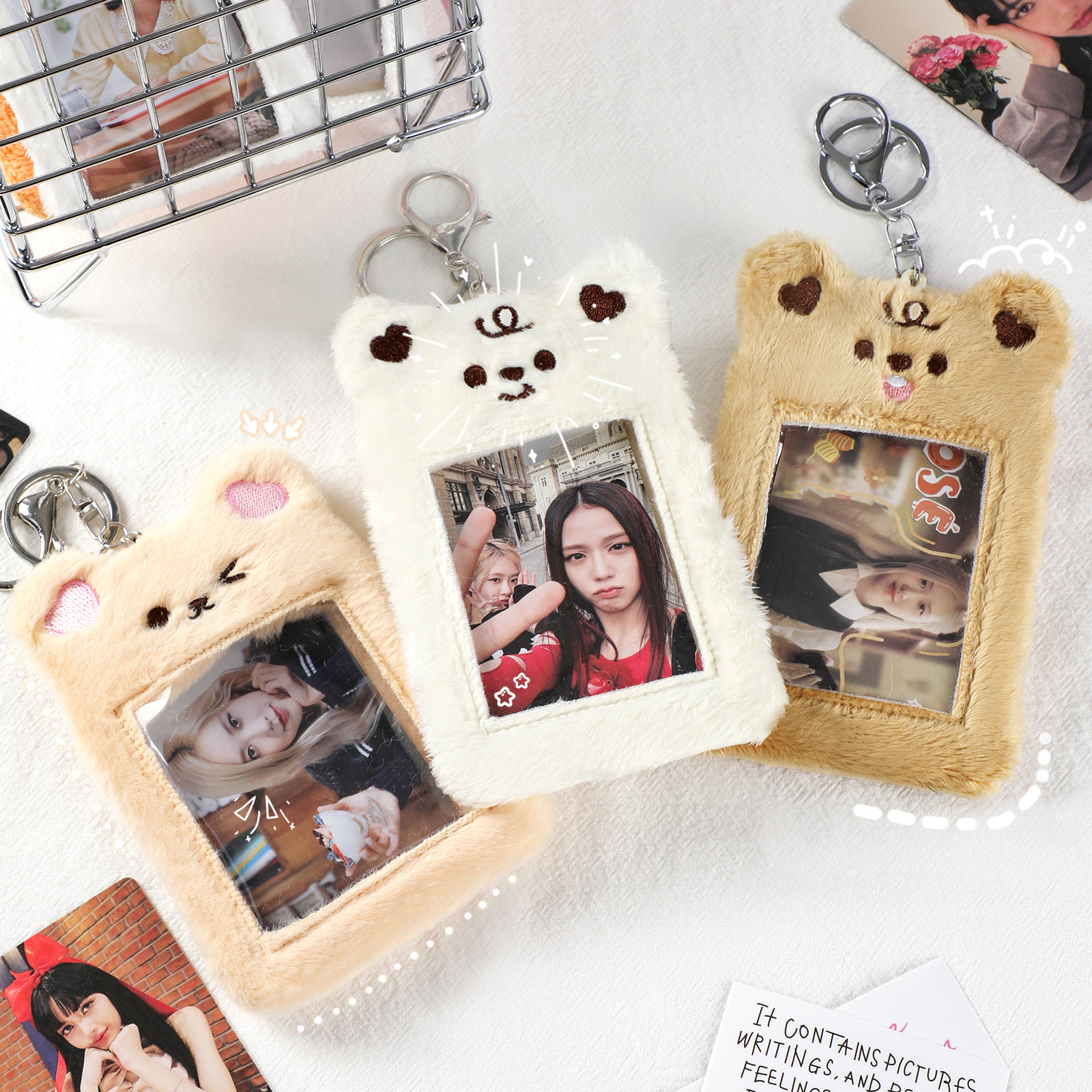 大切なトレカを可愛く保管できる推し活グッズの定番アイテムです。 ふわふわのもこもこ素材で作られたトレカケースは、動物の刺繍が施された癒し系デザインが特徴です。 透明窓から推しの写真がいつでも見られて、キーホルダー付きなので鞄に付けて持ち運びも便利です。 複数枚収納できる仕様で、お気に入りのトレカをまとめて大切に保護できます。 触り心地も抜群で毎日の推し活が楽しくなる必須アイテムです。