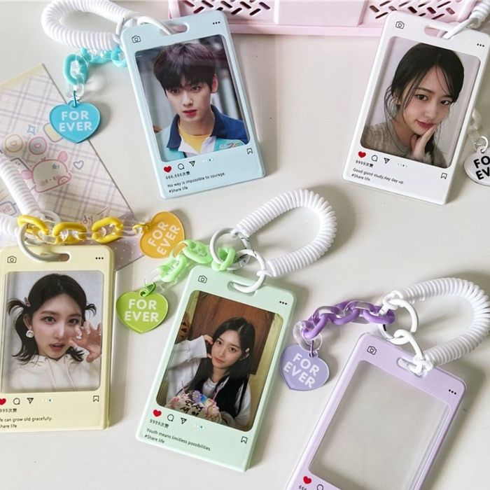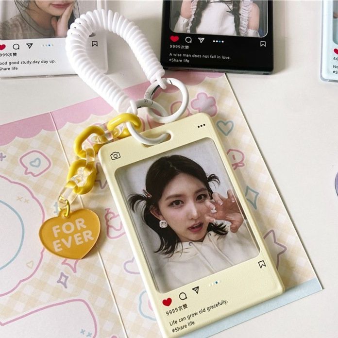まるで交流サイトの投稿画面のようなデザインが特徴的な推し活グッズのトレカケースです。 透明な窓から大切なトレカをしっかり保護しながら、おしゃれに持ち歩けます。 ハート型のチャーム付きで、推しへの愛を表現できます。 伸縮性のあるストラップと鎖チェーンが付属しており、鞄に取り付けて持ち運びも便利です。 推しのトレカを入れていつでも一緒にいられる、ファン必携のアイテムです。